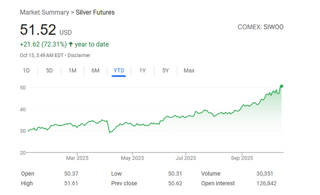 Silver has surged to a historic high, recently breaking the $53 per ounce mark, fueled by what analysts describe as an epic short squeeze and unprecedented market dislocation. The metal's year-to-date gain of nearly 72% has significantly outperformed gold's 60.2% rise, defying its nickname, "the poor man's gold."