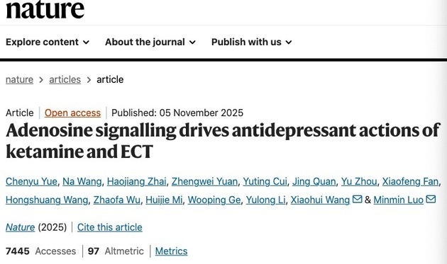 In the laboratory, they found that ketamine's anti-inflammatory effects were highly reproducible—a stark contrast to the instability of electrophysiological experiments. Following this clue, a paper on ketamine's impact on adenosine levels in blood cells came to his attention. "I thought this was very interesting," Luo Minmin recalled. "There was already considerable literature showing that adenosine has antidepressant effects, including the antidepressant benefits of sleep deprivation and ketogenic diets, which are both related to adenosine."