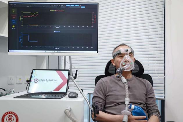Luo Minmin testing the intermittent hypoxia therapy (Photo provided by the interviewee)